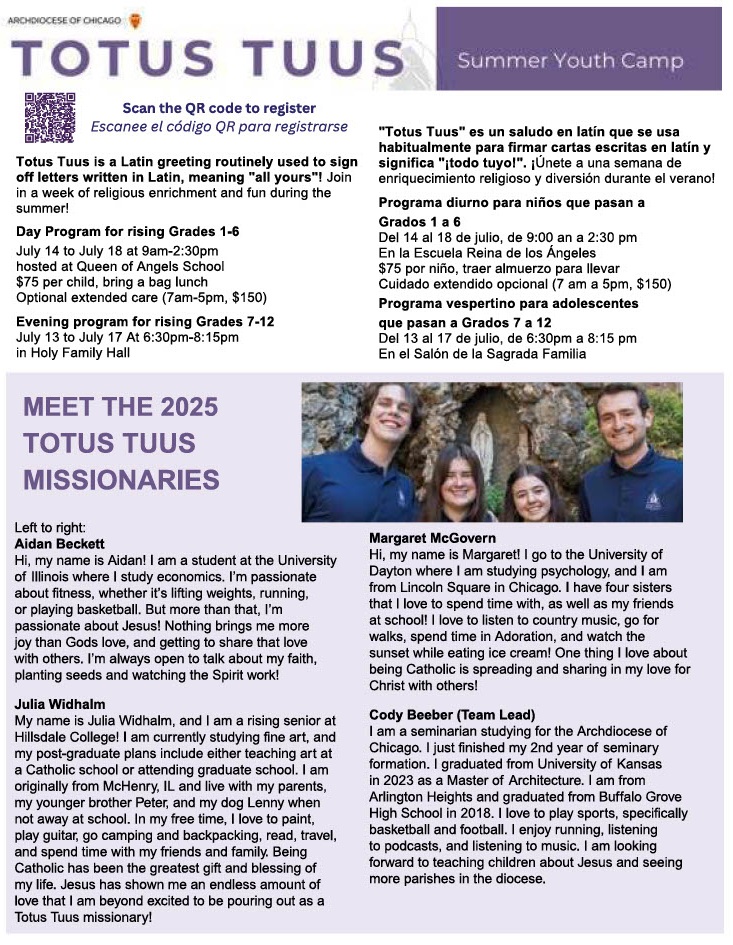 Queen of Angels Summer Camp Information and Registration